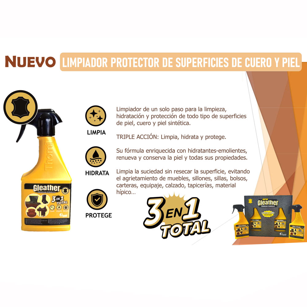 Limpiador de un solo paso para la limpieza, hidratación y protección de todo tipo de superficies de piel, cuero y sintéticos.