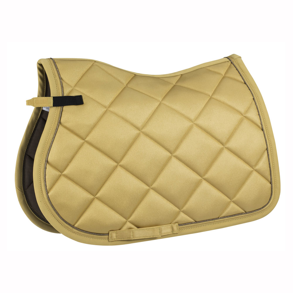 Mantilla acolchada confeccionada en tejido brillante de color crema, destacando su exterior distribuido en rombos de 10 centímetros cada uno, relleno de 5 mm de densidad y 240 gramos. La parte del forro es de malla transpirable y bambú que absorbe la humedad y se caracteriza por un secado rápido. Ribete en cinta del mismo tejido color crema a tono y el vivo en hilo dorado/negro que hace destacar al caballo de una manera elegante y discreta.